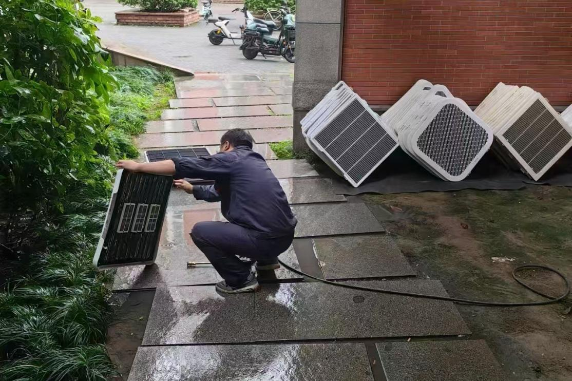 5月,后勤能源与工程管理部、物业管理部联合对学校办公室分体空调滤网开展清洗服务,历时20余天完成3000余台分体空调滤网清洁。