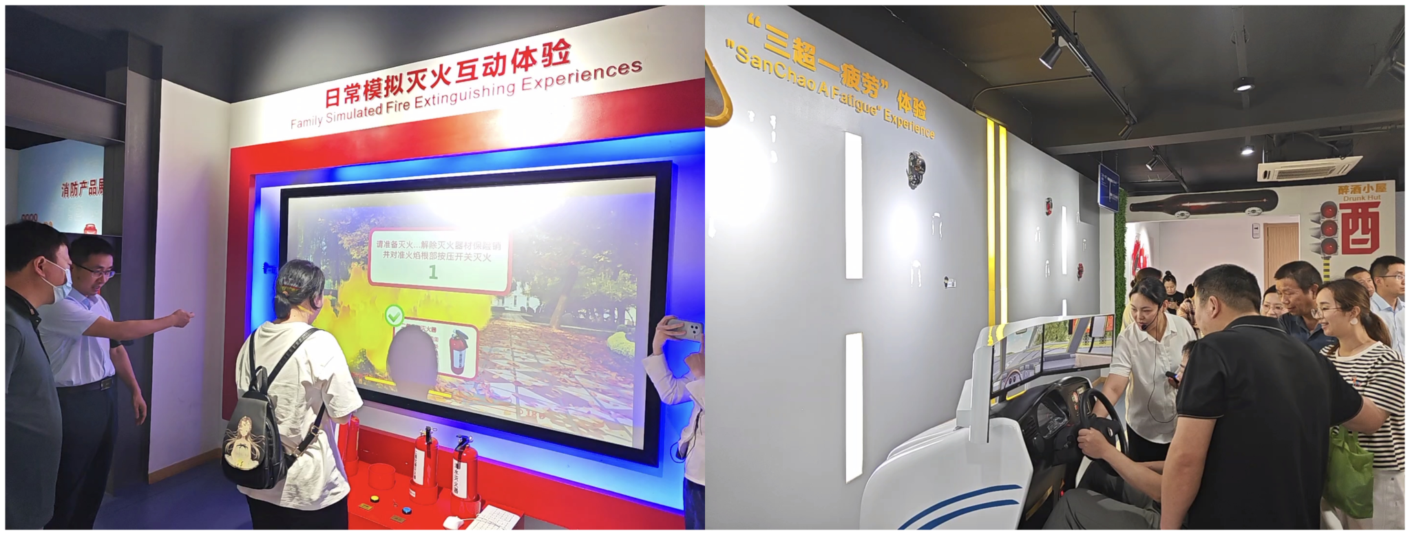 在专业讲解员的引导下,后勤员工们全身心投入学习。大家认真聆听讲解要点,观摩消防联动设施综合演示,并踊跃参与了多个互动体验项目,包括模拟碰撞体验、“三超一疲劳”驾驶警示体验、日常模拟灭火实操演练以及极具挑战性的热烟逃生演练。这种“沉浸式”体验让抽象的安全知识变得生动具体、印象深刻。