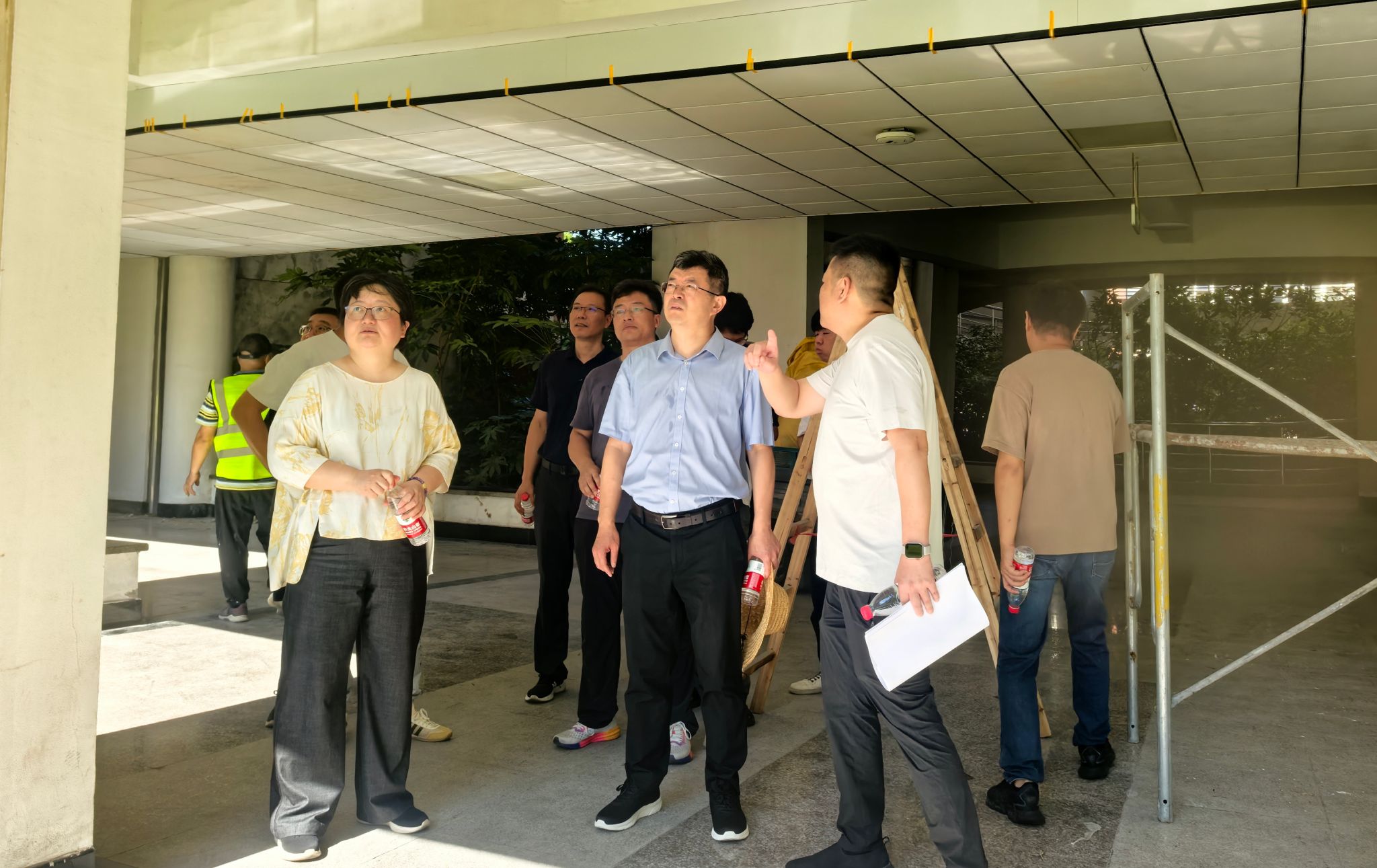 王迪钊一行先后来到行政楼、教学楼、门岗、学生公寓、食堂等多个工作点位,每到一处,王迪钊都仔细询问各点位暑期项目建设进展或服务保障的具体举措与实际成效,向冒着酷暑、坚守岗位的员工们致以诚挚的问候和由衷的感谢。他指出校园暑期平稳运行离不开大家的默默奉献,强调各部门及员工要高标准做好暑期工作,确保项目实施进度与质量、服务保障安全与品质,以焕然一新的面貌和更加优质的服务迎接新学期,为学校高质量发展保驾护航。