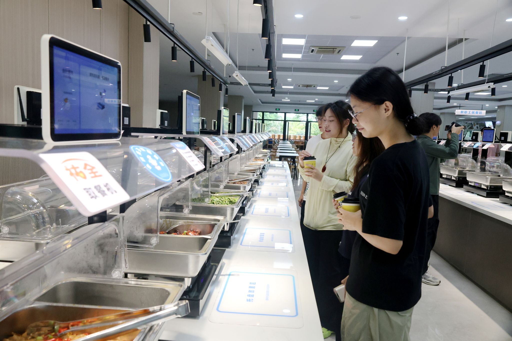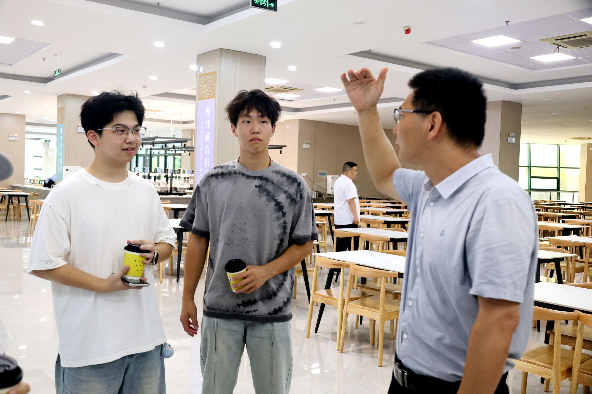 本次活动聚焦暑期校园民生改造项目。“师生体验官”们在翔宇楼“量小驿”品尝食堂自制饮品,在东区T1食堂及西区F16食堂参观体验了全新升级的就餐环境与设施设备,师生代表们还实地走访了翔宇楼过道、环宇楼连廊、西生活区10号楼等环境改造项目。“哇塞,东区食堂外观变化好大,看起来很高级”,一走近T1食堂季子超同学不禁感叹道。理学院的曹老师也在体验了全新的教工就餐区后表示“新桌椅比我家里的还舒适,以后应该会减少打包,多在餐厅用餐”。