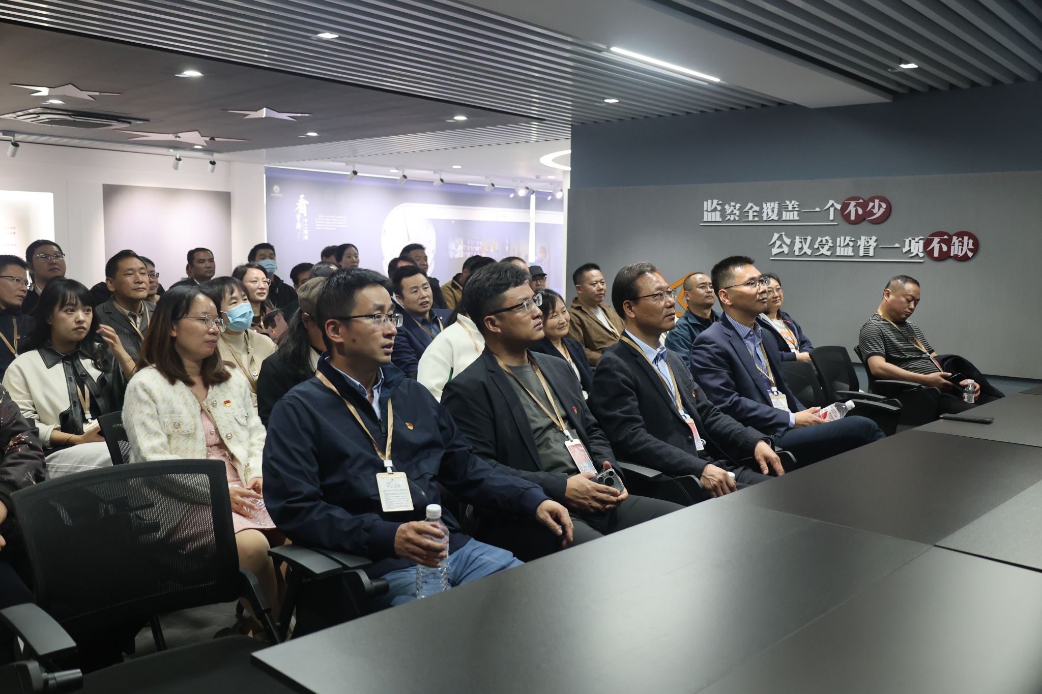 铮铮誓言唤醒拳拳初心,在教育基地展馆大厅内,大家在讲解员的引导下,依次参观了“不忘初心 牢记使命”、“以案为鉴 正风肃纪”、“清韵炼心 严守防线”、“警廉文化展示馆”四大核心展区。在基地首创的沉浸式教育模块,同志们参与了五彩诱惑触觉体验、忏悔之音听觉体验,观看了全息剧场《防微杜渐》反腐短片。栩栩如生的全息投影、身临其境的声光电互动,在“触碰展品触发场景破碎”等创新形式下,参与者们直观体会到贪腐的后果。最后,大家还集体观看了清廉微电影《铃》。