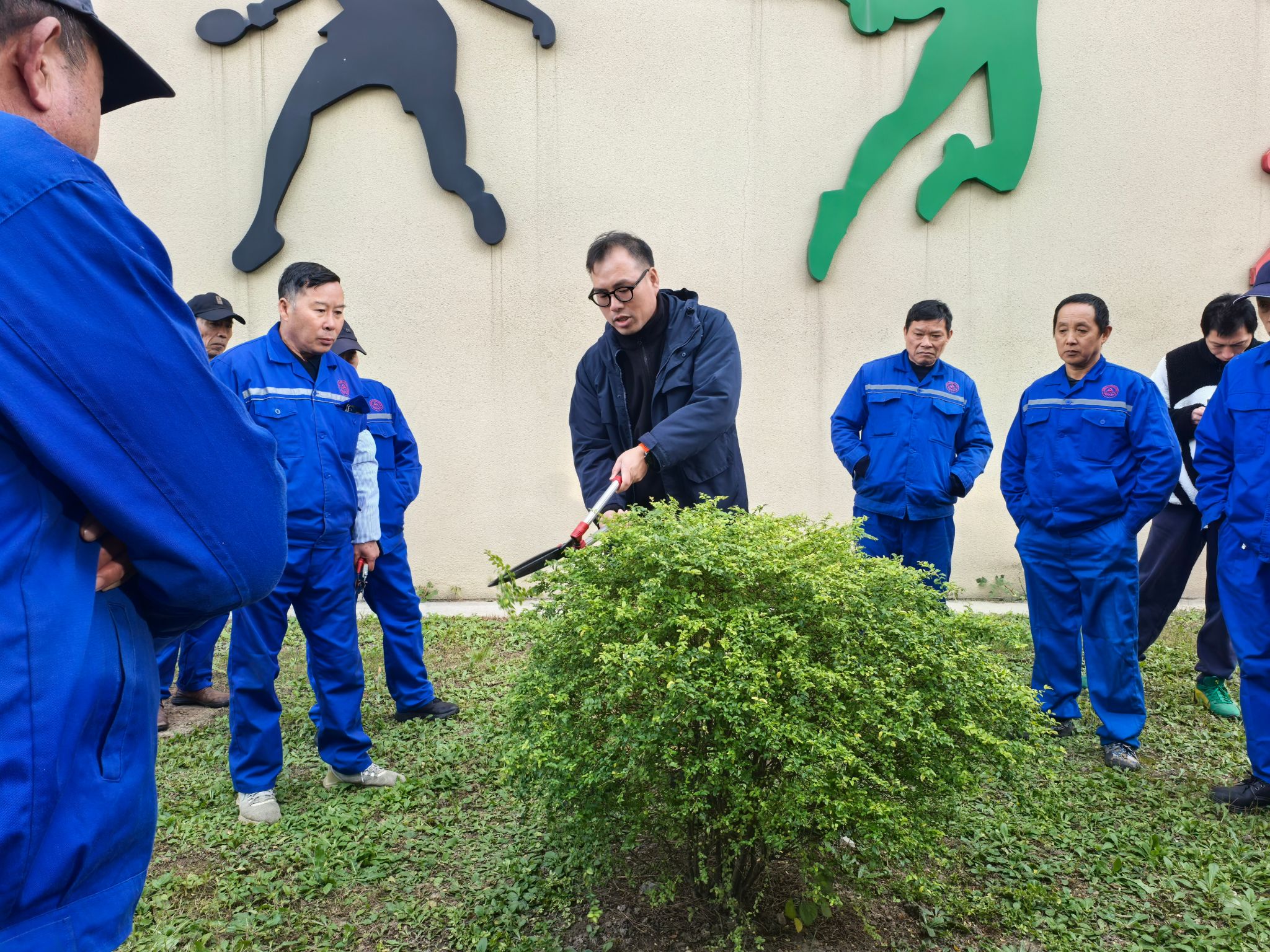本次培训由理论培训和实操指导两部分组成,特别邀请了园林绿化高级技师、风景园林工程师、杭州电子科技大学物业服务部陈健老师为参训人员授课。