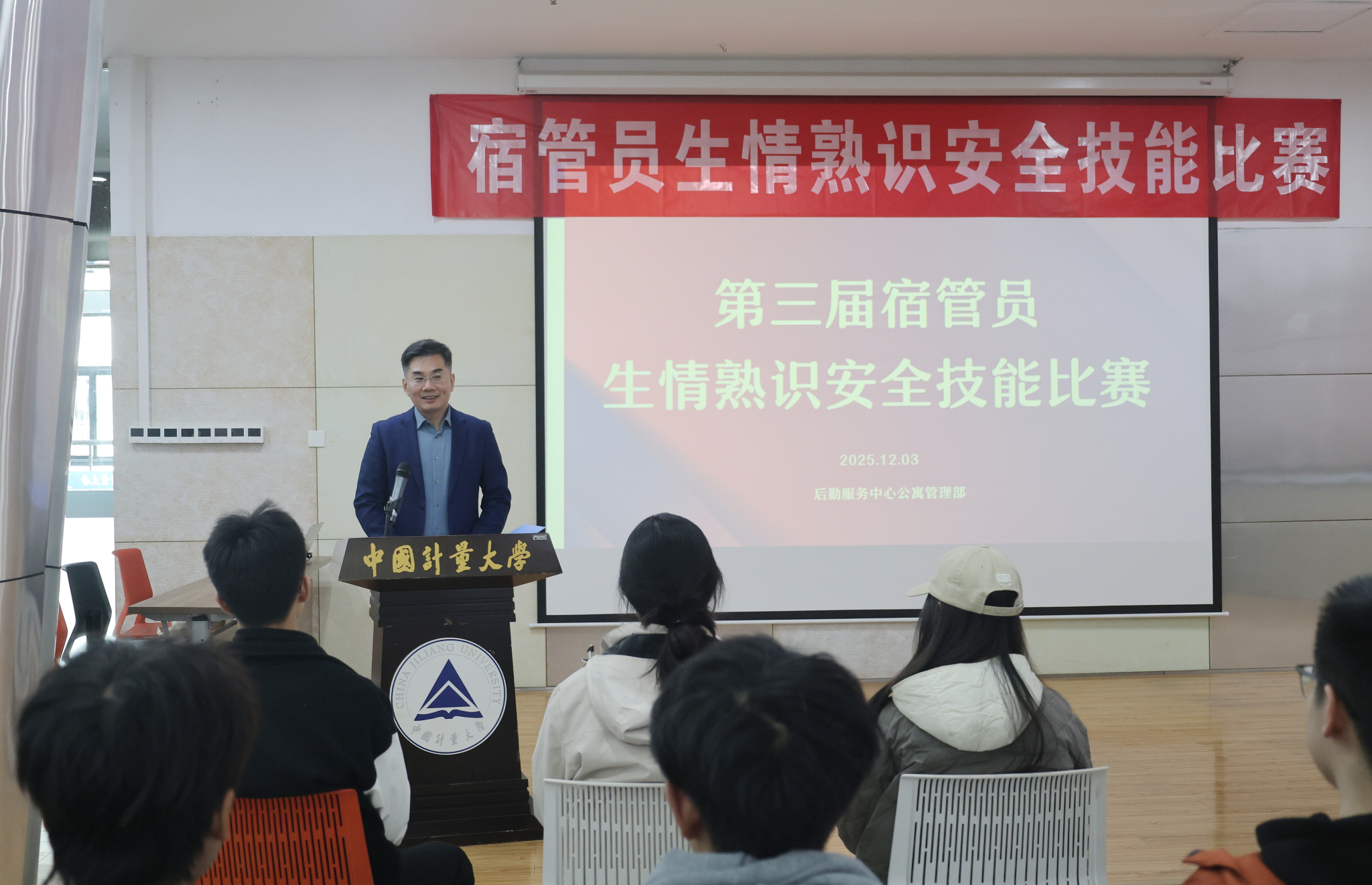 宿管员队伍作为校园“8+X”预警体系中的一员,在守护校园安全、维护校园稳定方面发挥着重要作用。为持续强化宿管员队伍的责任意识与管理能力,切实提升服务主动性与工作效能,后勤中心于12月3日中午在G3食堂4楼举行了第三届宿管员生情熟识技能比赛,校党委委员、副校长王斌锐、后勤服务中心主任黄建湖、后勤服务中心党总支书记邵文均、学工部副部长金杰等出席。