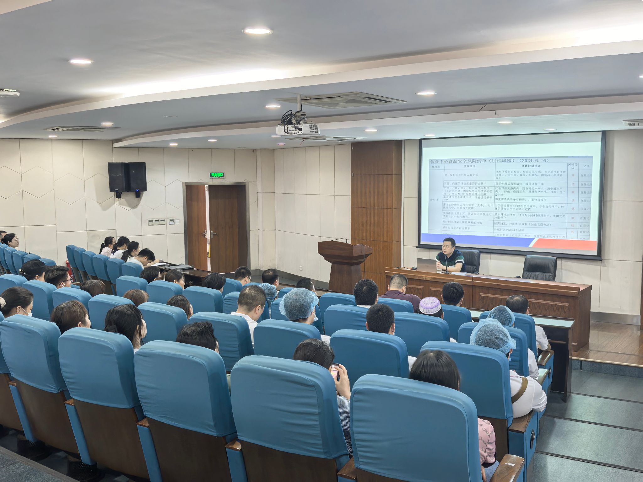 孟应雷重点讲解了《食品安全法》的相关法律法规、餐饮各项管理制度和食品安全风险如何防控等,强调了食品安全的法律责任和重要性;并结合案例和平时容易出现的食品安全问题,深入剖析食品从采购、储存、加工到销售等各个环节可能存在的安全隐患,对《餐饮服务食品安全操作规范》进行了重点培训,引导员工们树立“预防为主,安全第一”的理念,确保每一环节都符合食品安全标准。