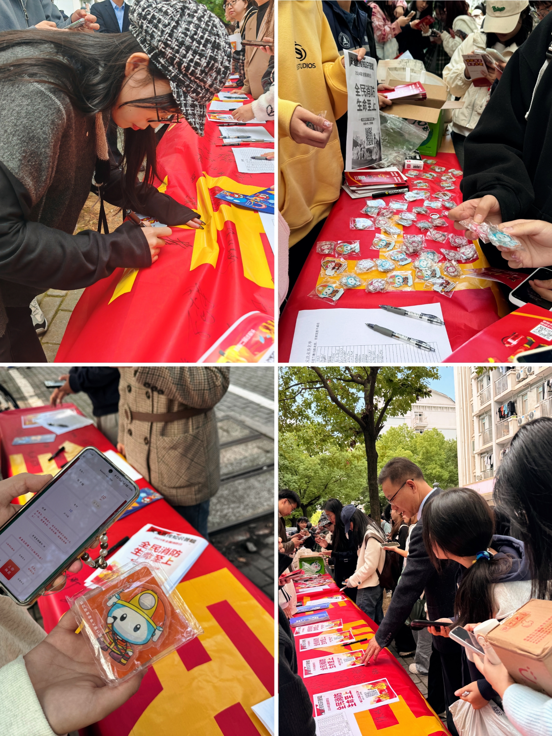 安全知识竞赛内容涵盖了校园安全报警电话、火灾预防、初期火灾扑救、疏散逃生等多个方面。对答题满分的同学,奖励卡套、冰箱贴、手机支架、洗衣券等精美小礼品,不仅激发了大家学习消防安全知识的热情,同时也提高了参与者的消防急救知识水平。最后,师生们在活动主题横幅上签名。