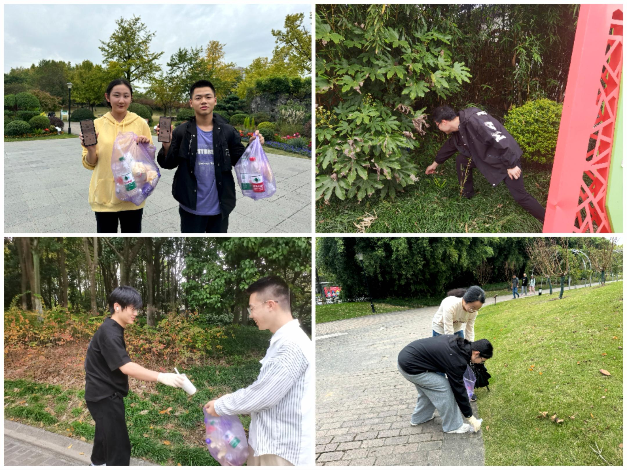 活动现场气氛热烈,大家沿着预定路线稳步前行,全程约1.5公里。一路上,师生们手持垃圾袋,弯腰捡拾垃圾,小到烟头、纸屑,大到塑料瓶、包装袋,都被一一清理并进行分类投放,用双手为垃圾分类贡献力量。活动现场还设置了垃圾分类知识宣传区。通过展示垃圾分类海报、发放宣传手册等方式,向师生们普及垃圾分类、资源节约等环保知识,同学们积极互动,在轻松愉快的氛围中深化了对环保理念的理解。