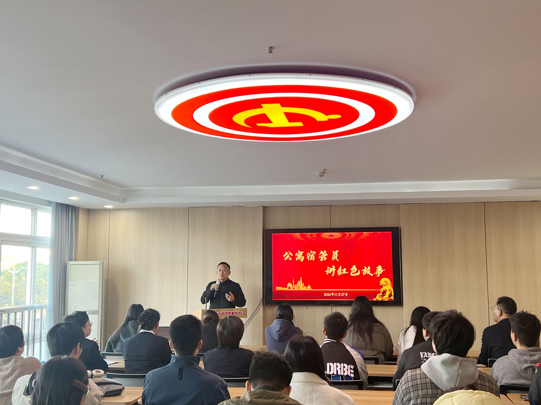 “红色是中国共产党、中华人民共和国最鲜亮的底色。”11月27日,中国计量大学开展了一场特殊的红色故事会,红色故事的讲述者是学校公寓的宿管员们,她们来自五湖四海,向学生楼层长们生动讲述自己家乡的红色故事,让同学们感受祖国发展的艰辛历程、巨大变化、辉煌成就。