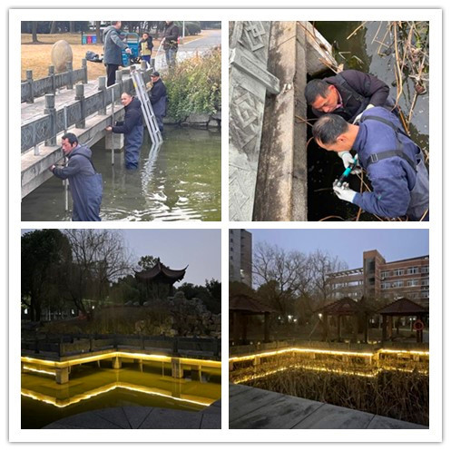 寒假期间,报修平台始终在线,持续为师生提供24小时的维修服务。截止到2月15日,办理完结各类报修任务215件。制定假期检修计划,充分利用假期便利条件,集中完成多项重要维修工作,包括卫生间给水管维修、管道井夹层排水管维修、体育馆和教学楼高空灯具检修、教学楼及学生宿舍地砖鼓起维修等。此外,为了提升校园夜间照明效果,维修师傅们群策群力,共同完成了日月湖梁桥亮灯工程,使得校园的夜晚更加明亮和安全。