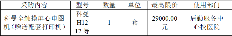 本项目为中国计量大学后勤服务中心科曼全触摸屏心电图机询价,采购需求如下: