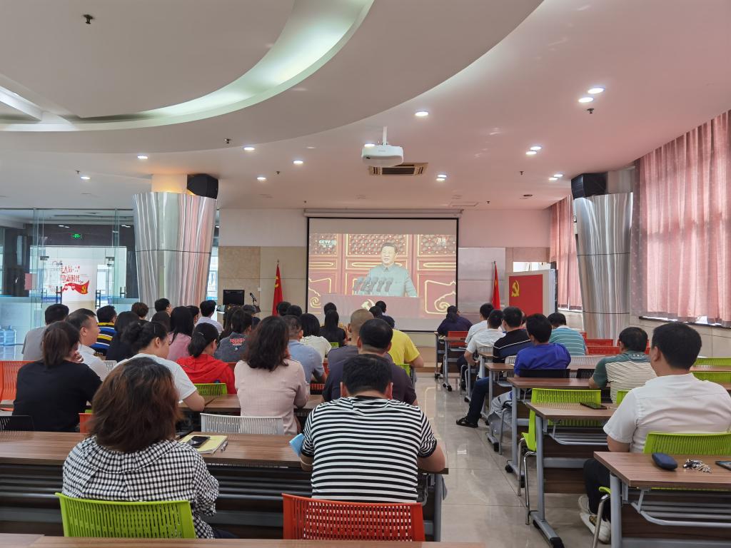 7月1日上午8时,庆祝中国共产党成立100周年大会在北京天安门广场隆重举行,中共中央总书记、国家主席、中央军委主席习近平出席大会并发表重要讲话。后勤服务中心组织全体党员准时观看大会直播盛况,认真学习领会习近平总书记重要讲话精神。